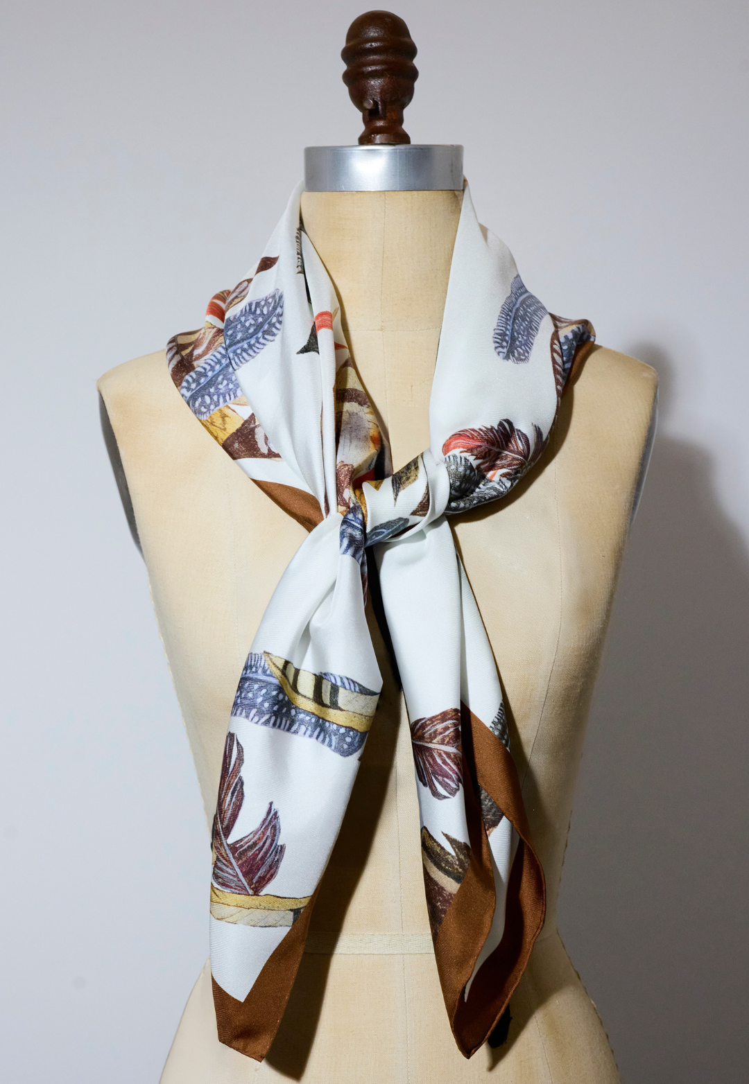 Delicate, luminous, and artfully expressive, the White Fantasia Handrolled Silk Scarf transforms Ala’s original artwork into a whisper-soft accessory with elegant movement. Its fluid drape and versatile square shape make it the perfect finishing touch—whether tied at the neck, wrapped into your hair, threaded through the Leather Belt to create a sculptural waist detail, or knotted onto the handle of your Raffia Bag for an effortless pop of print. A refined, travel-ready piece that brings a poetic softness to every look. Made in New York City.