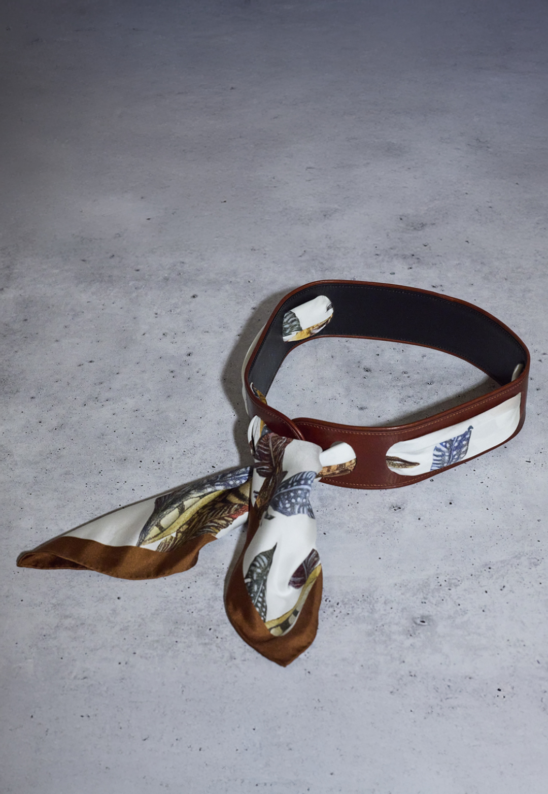 • Style at the neck, in the hair, woven through the Leather Belt, or tied onto the Raffia Bag
