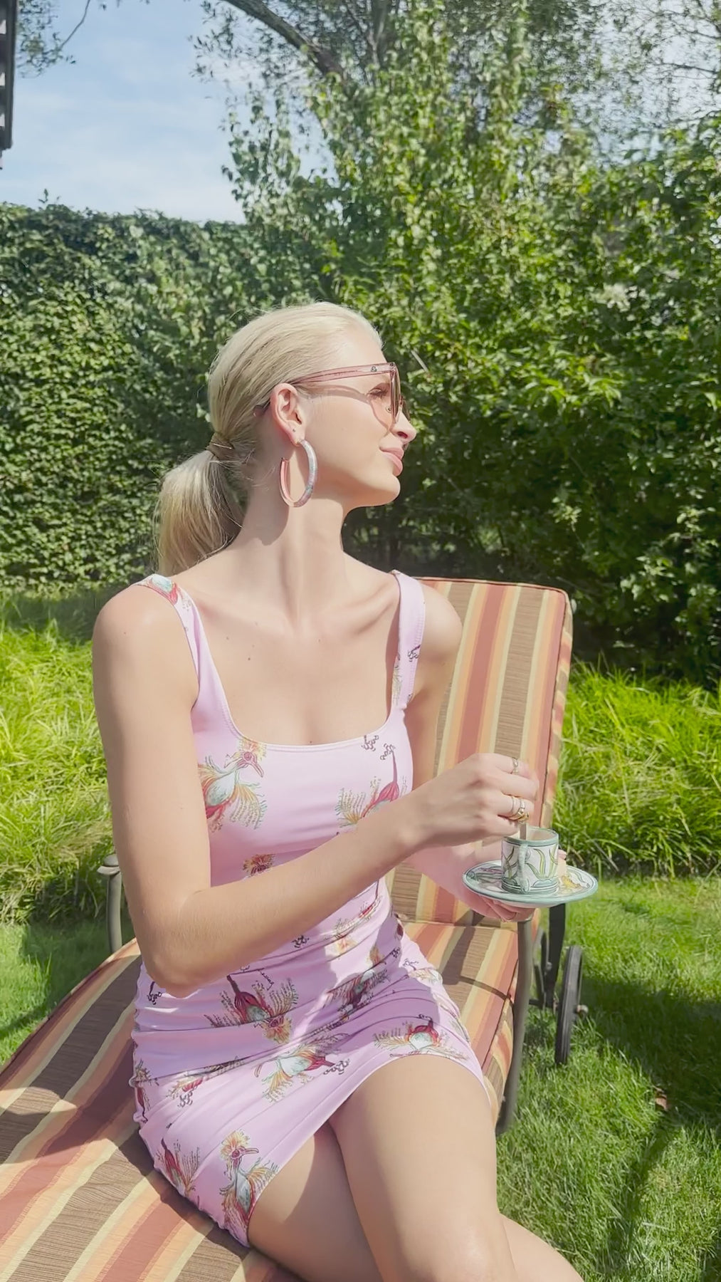 Bright, uplifting, and effortlessly flattering, the Caterina Mini Dress in Cuckoo Birds turns one of our most iconic silhouettes into a joyful burst of color and movement. The stretch knit smooths and skims the body with ease, while the bra-friendly straps and clean, bound edges keep the shape refined. Light enough for warm days yet polished enough to style for evening, it becomes even more expressive layered beneath the Sophia, Shasta, or Geraldine Sheer Dresses—each one letting the artwork peek through in its own whimsical way. A little dress with big personality. Made in New York City.